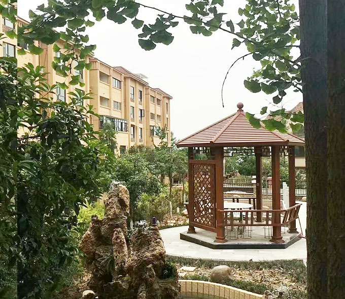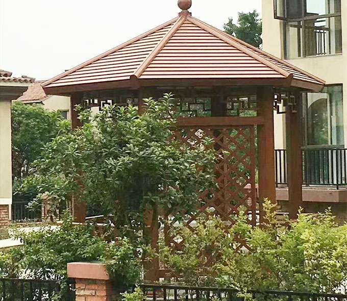 成都笑宇人工智能服务有限公司凉亭系列产品是采用高强度铝合金为原材料,经酸洗铬化,电泳或静电喷涂,木纹转印处理后,精密定制设计,保障安装。它具有防水防潮,不膨胀不变形,防腐蚀,具有逼真的木质感。成为别墅住宅及市政园林等建筑美丽的风景。